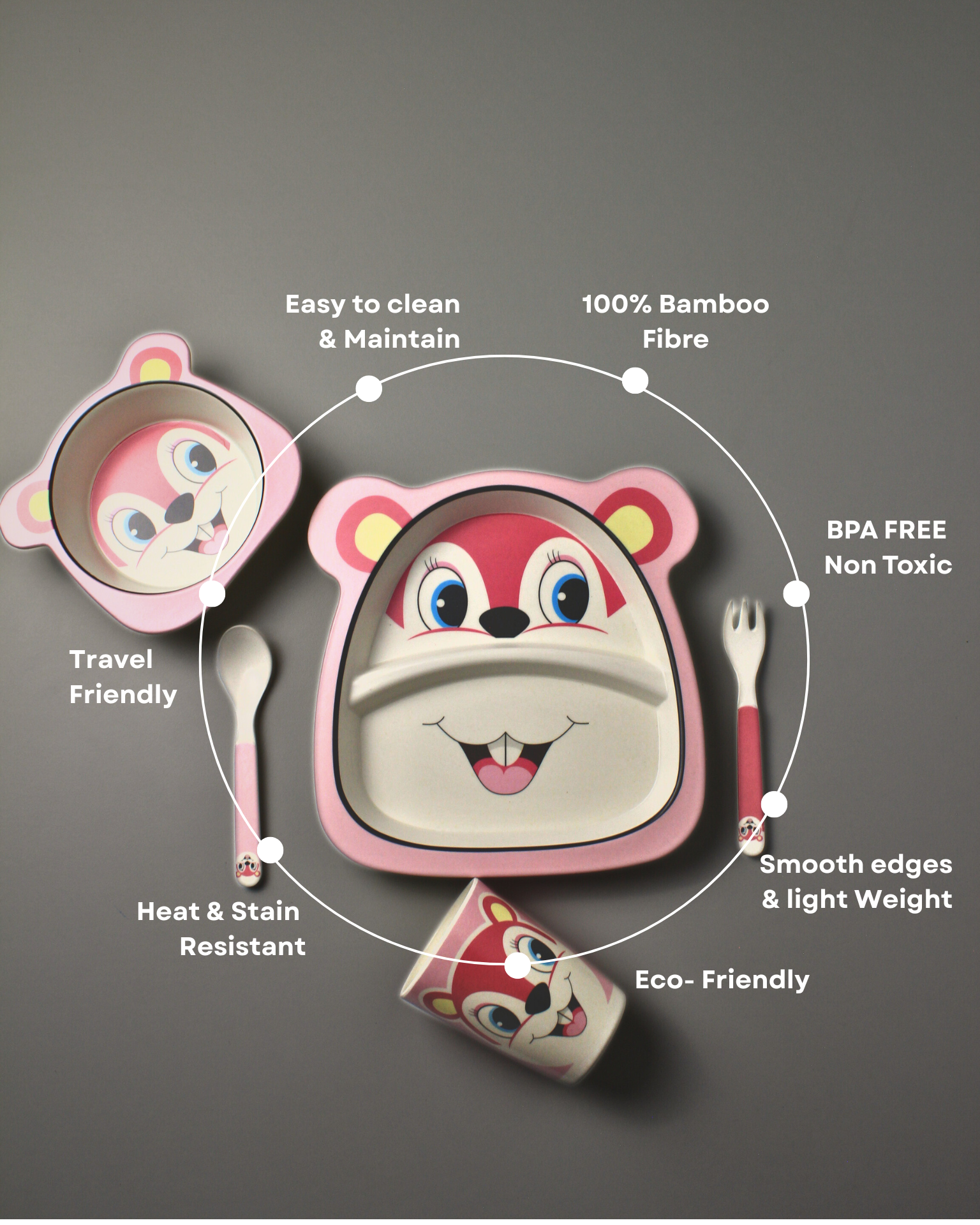 Thumper Bambi Kids Bamboo Dinner Set of 5 | Eco-Friendly | 100% Organic | Stain Resistant | Break Resistant